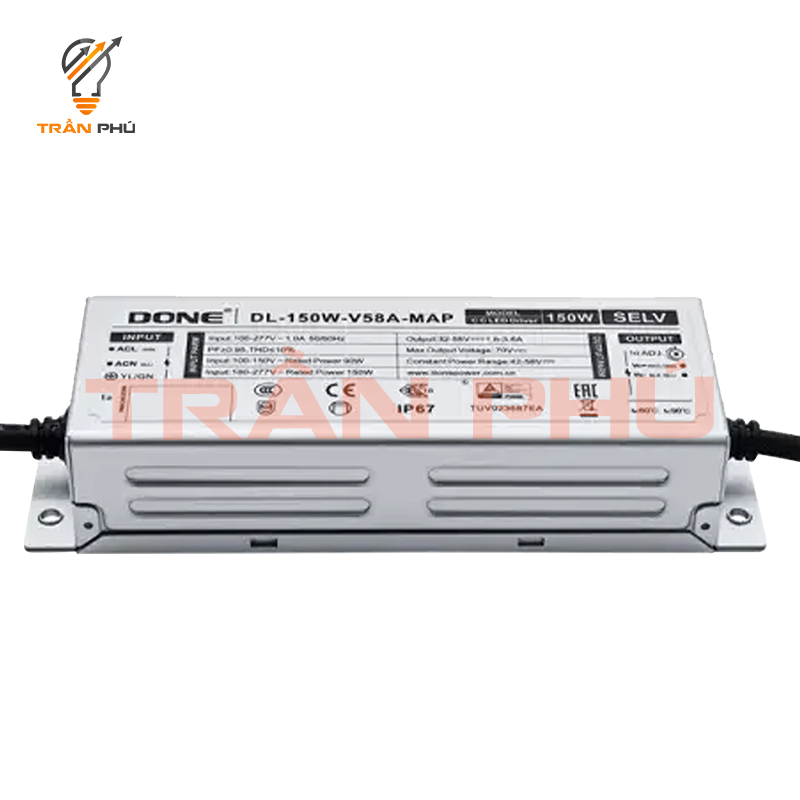 Nguồn (driver) Done đèn led sử dụng chuyển đổi điện áp từ nguồn điện lưới xoay chiều sang dải điện DC cho đèn led sử dụng. Nguồn đèn led DONE, là thiết bị được nhập khẩu trực tiếp có chứng nhận CO, CQ đầy đủ.