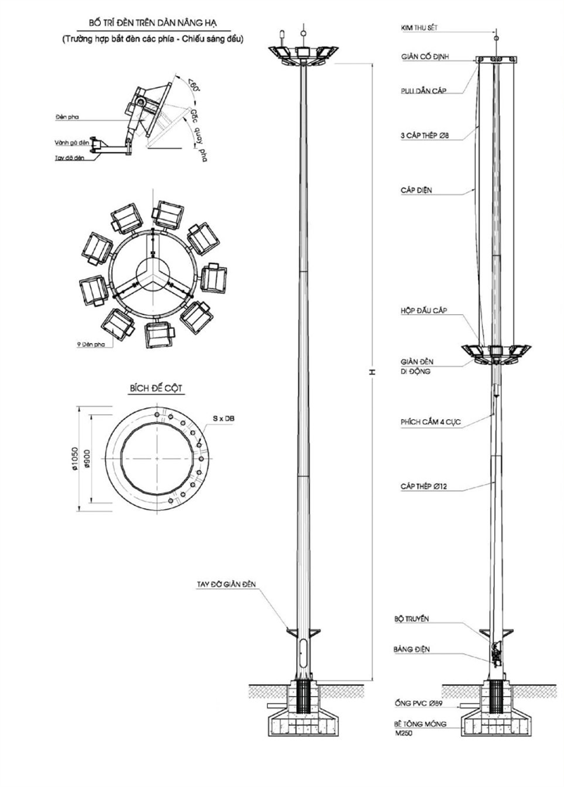CỘT ĐÈN NÂNG HẠ 25M - 30M