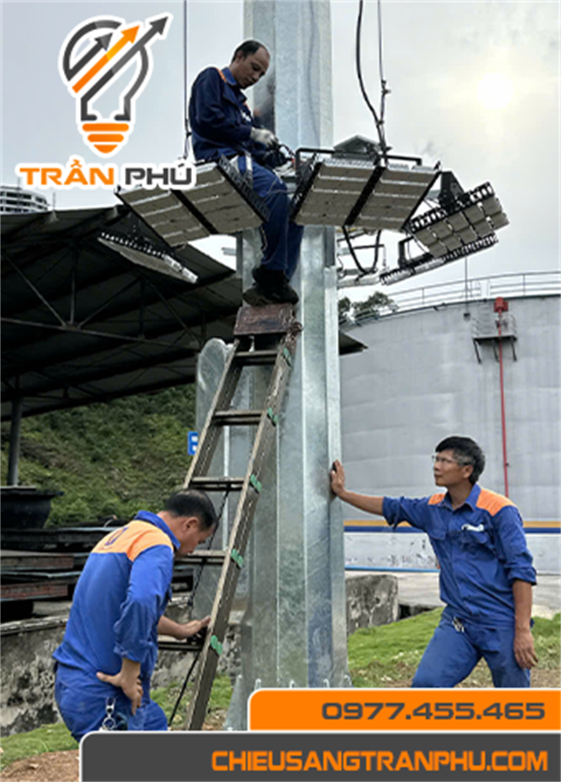 Cột đèn nâng hạ có thể lắp từ 10 – 20 bộ đèn LED công suất cao. Đèn có độ cao > 20m nên khả năng chiếu sáng tỏa rộng rất tốt.