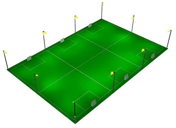 Thiết kế bố trí đèn chiếu sáng sân bóng đá mini 7 người 40 x 60
