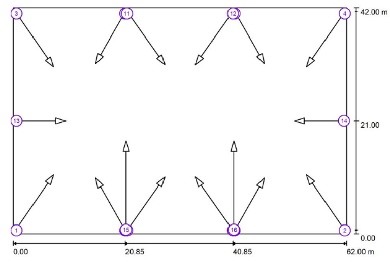 Bố trí đèn sân bóng 40 x 20: Bố trí 12 đèn trên 6 cột hai bên sân