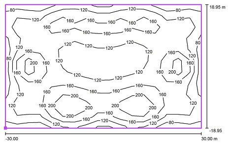 Cấp 2: Dùng cho thi đấu phong trào với độ rọi mặt sân phải đạt 200 Lux, UoMin/ave >0.5